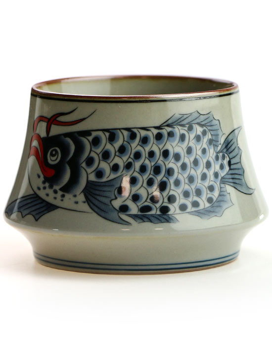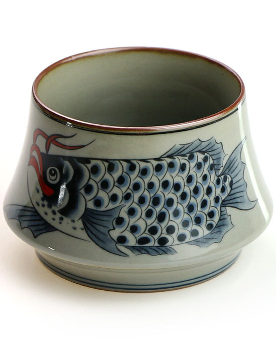 Античная глазурь и крупный динамичный рисунок делают эту чашку настоящим акцентом в интерьере. Она одинаково уместна на открытой полке современной кухни, на рабочем столе или на чайном подносе в гостиной. Карп на боку чашки притягивает взгляд — и неизменно вызывает вопросы у гостей.