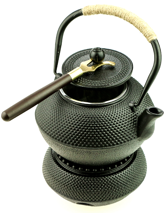 Чайник для заваривания чая чугунный, японский чайник Тэцубин, с съемным ситом из нержавеющей стали, объем 1200 мл, в комплекте с чугунной печкой мармитом и ухватом, незаменимая вещь зимой при блекаутах
