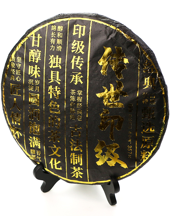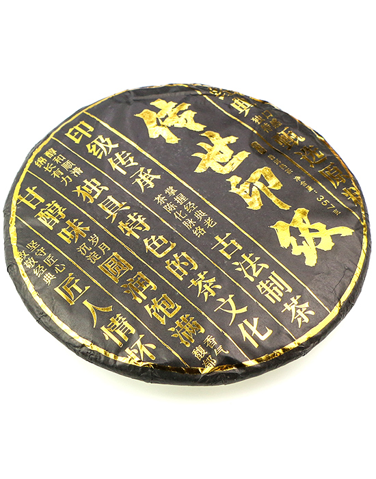 Китайский чай Шу пуэр императорский гунтин с золотыми бутонами, чай с древних деревьев Мэнхай Гу Шу, урожай 2019 года, традиционный рецепт прессование в каменных формах, вес 357 грамм
