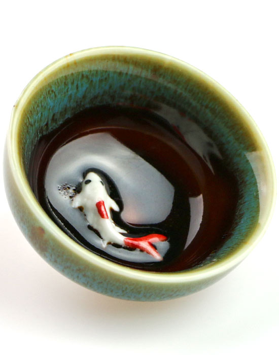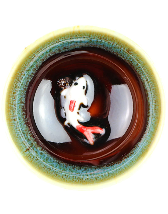 Золотая рыбка — один из главных символов удачи, изобилия и исполнения желаний в китайской культуре. Иероглиф 金鱼 (jīnyú) созвучен словосочетанию «золото в изобилии», поэтому мастер поместил её на дно пиалы намеренно: каждое чаепитие превращается в маленький ритуал притяжения достатка. Налейте в пиалу пуэр или красный чай — и рыбка словно оживёт: тёмная жидкость создаёт иллюзию глубины, белое тельце с алыми плавниками начинает «плыть». Этот момент неизменно вызывает восторг — и у опытных чаелюбов, и у тех, кто только открывает для себя мир Гунфу Ча.