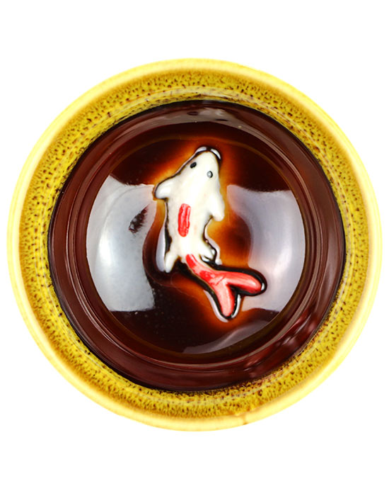 Пиала с Золотой Рыбкой исполняющей желания, чабэй для Гунфу Ча, чашка для чайной церемонии, керамика в желтой глазури Небесный Глаз, чашка для чая тэммоку, Тяньму, объем 50 мл