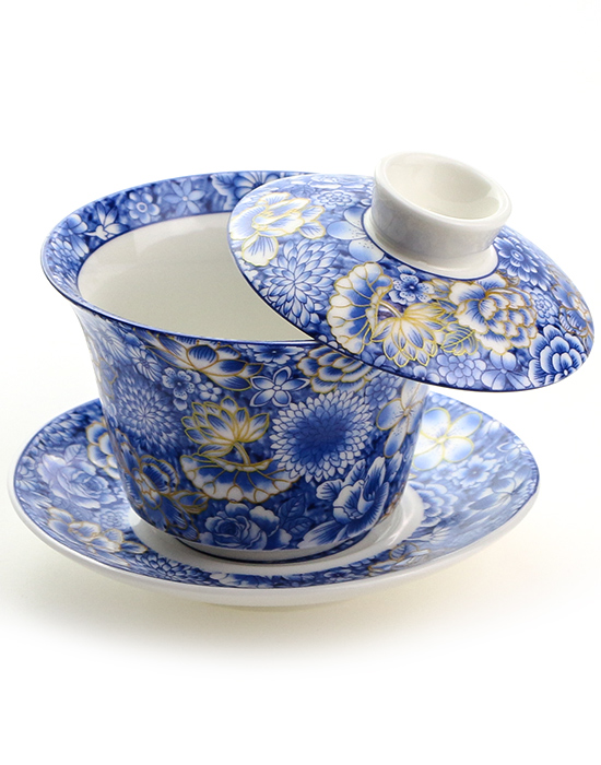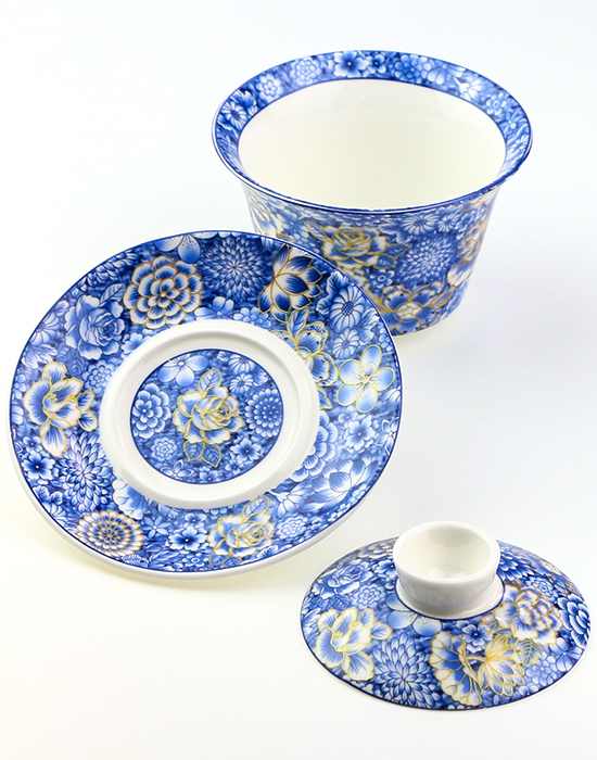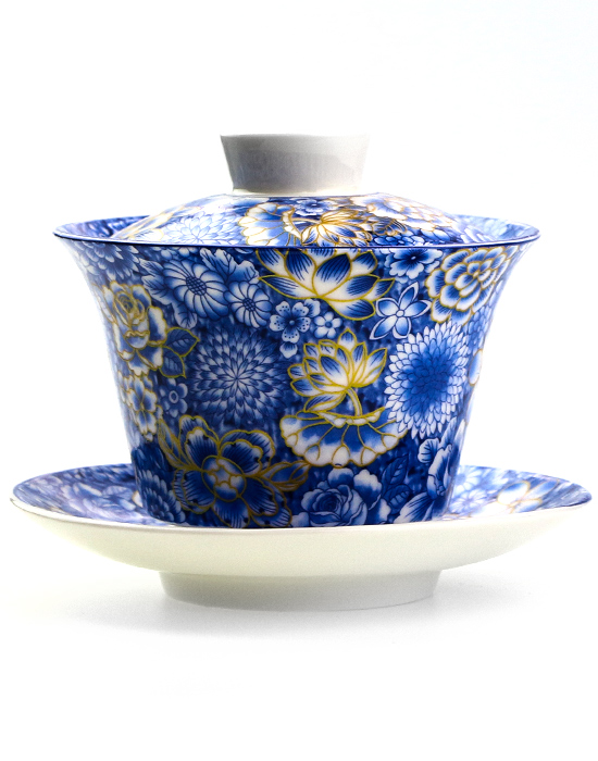 Гайвань “Цвітіння Тисячі Квітів”, чаша для заварювання чаю з кришкою і блюдцем, що ширяє, гайвань з “левітуючої” кришкою, gaiwan with hovering lid, китайська порцеляна Дехуа, об’єм 150 мл