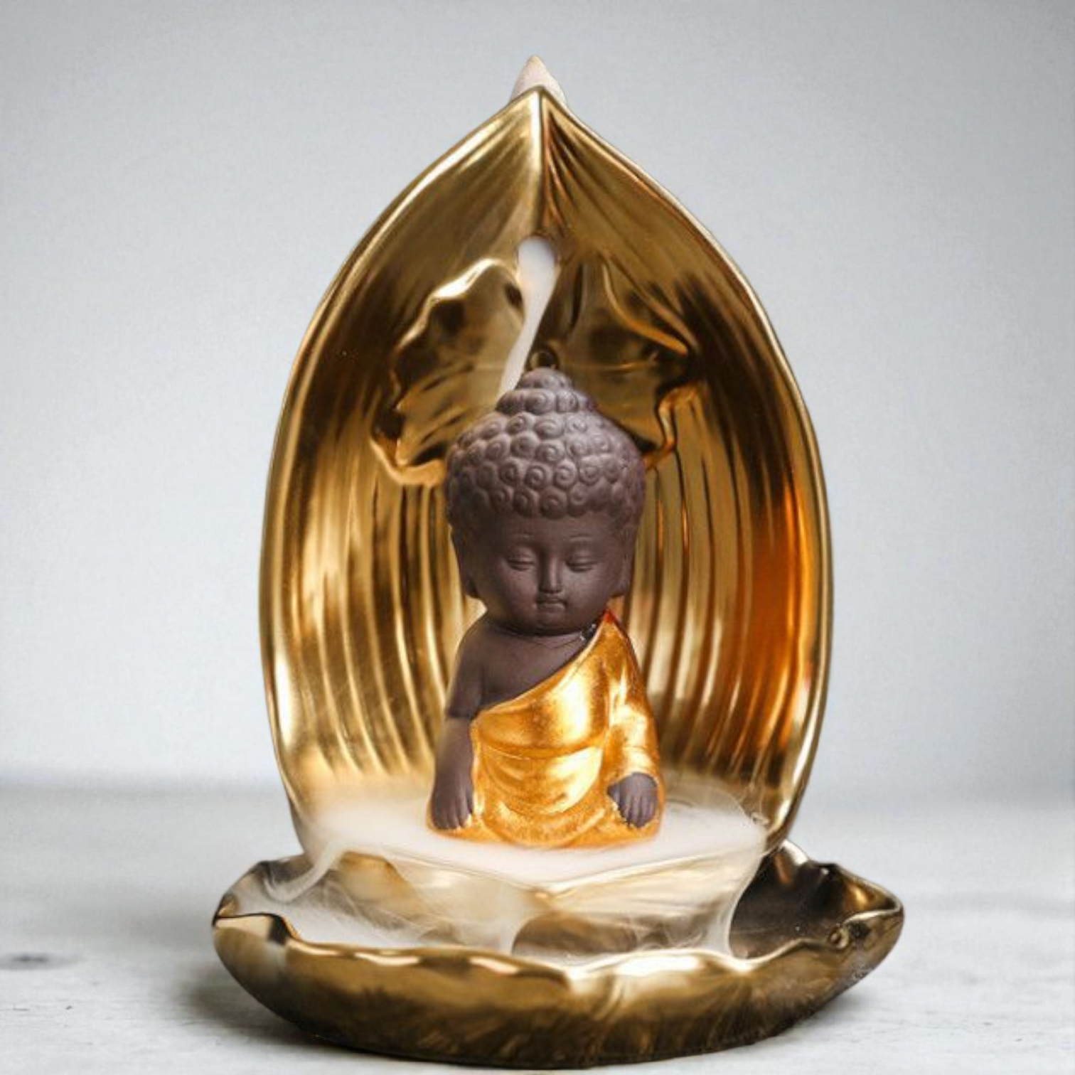 Підставка Будда в позі лотоса, для спалення арома конусів зі зворотним потоком, дим backflow, що стеляться, для медитації, димний фонтан, рідкий дим, кераміка